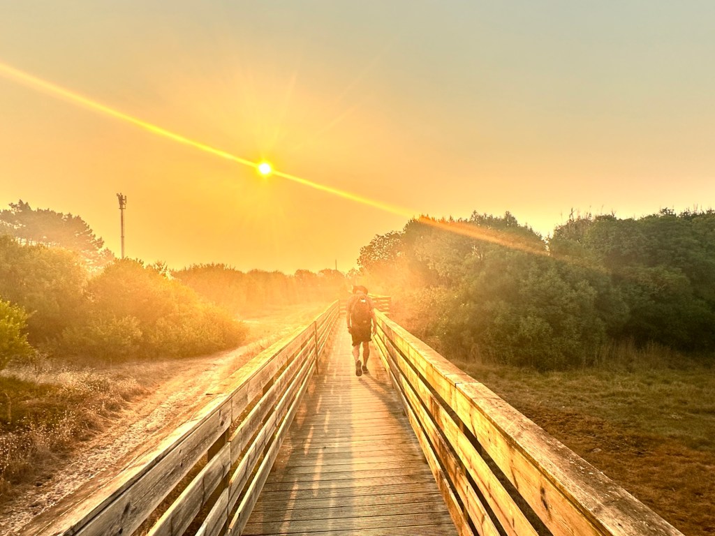 Red skies were the order of the morning. The first few kilometres were on boardwalk, something that we’re all a little board of – boom tish!