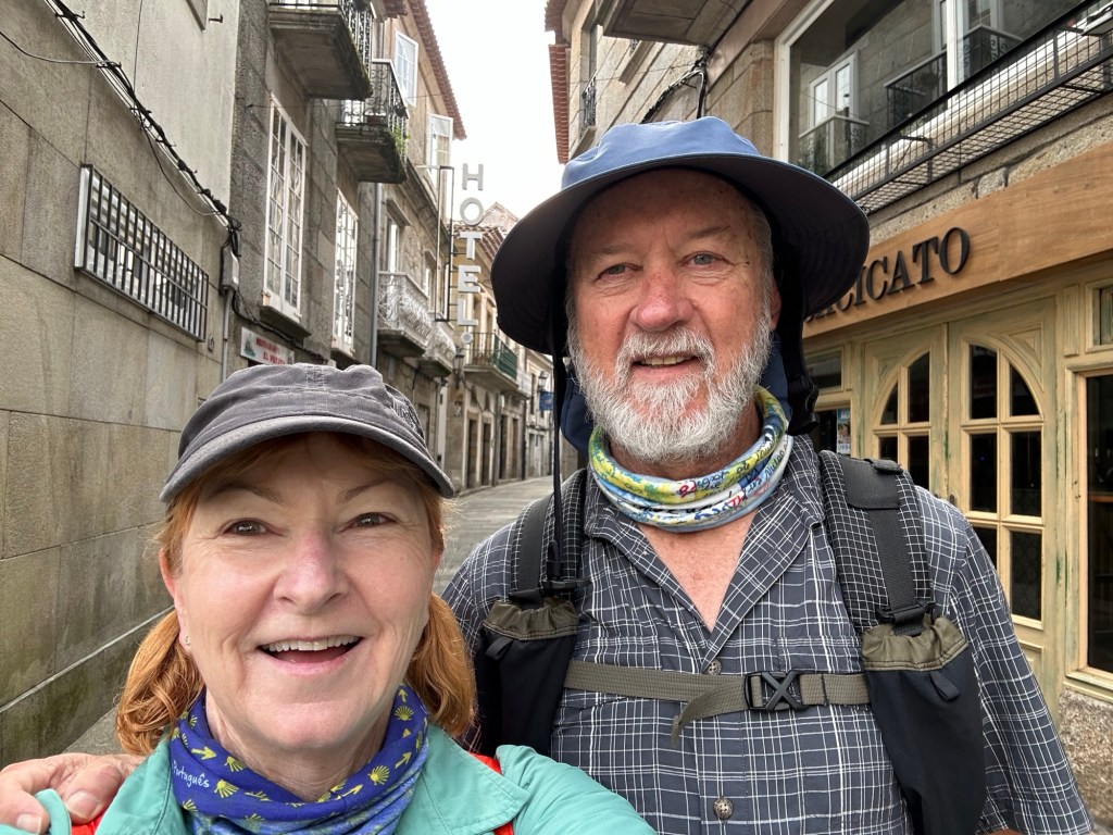 They both purchased some sandals in A Guarda and are trying the German approach, socks and sandals.