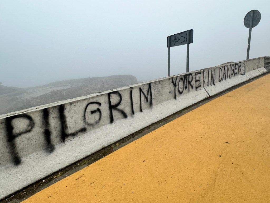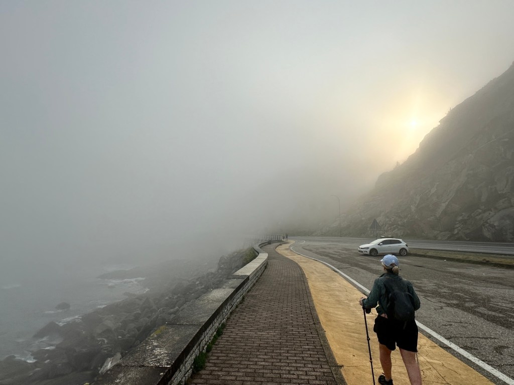 Not a great way to kick off day 7 on the Camino Portuguese as we wandered off into the fog off Cabo Silleiro.