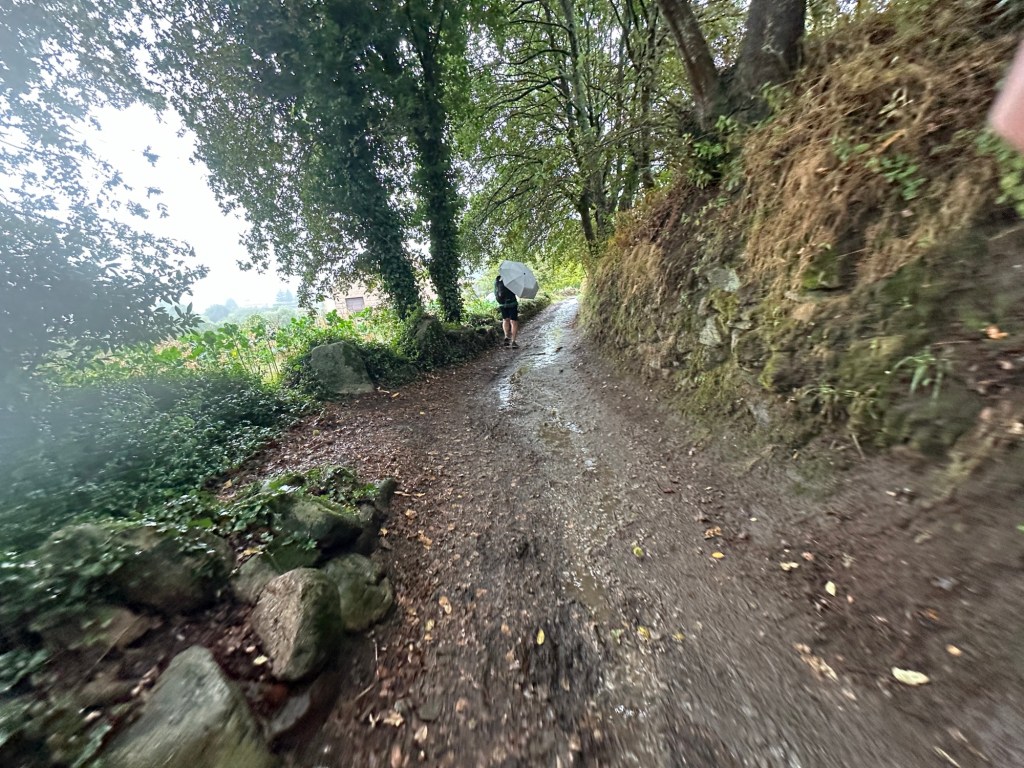 As we dropped down, the trail meandered through villages and forest. The rain would come and then go.